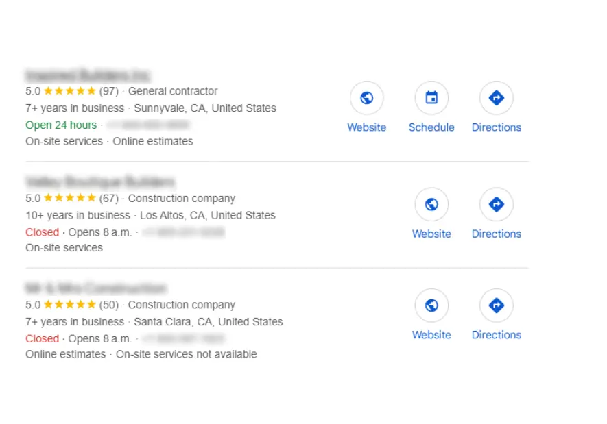 Local SEO focuses on getting your construction company featured prominently in the Google Map Pack. This is crucial for local service-based businesses that want to dominate their area. Appearing here means more visibility, more calls, and more customers.