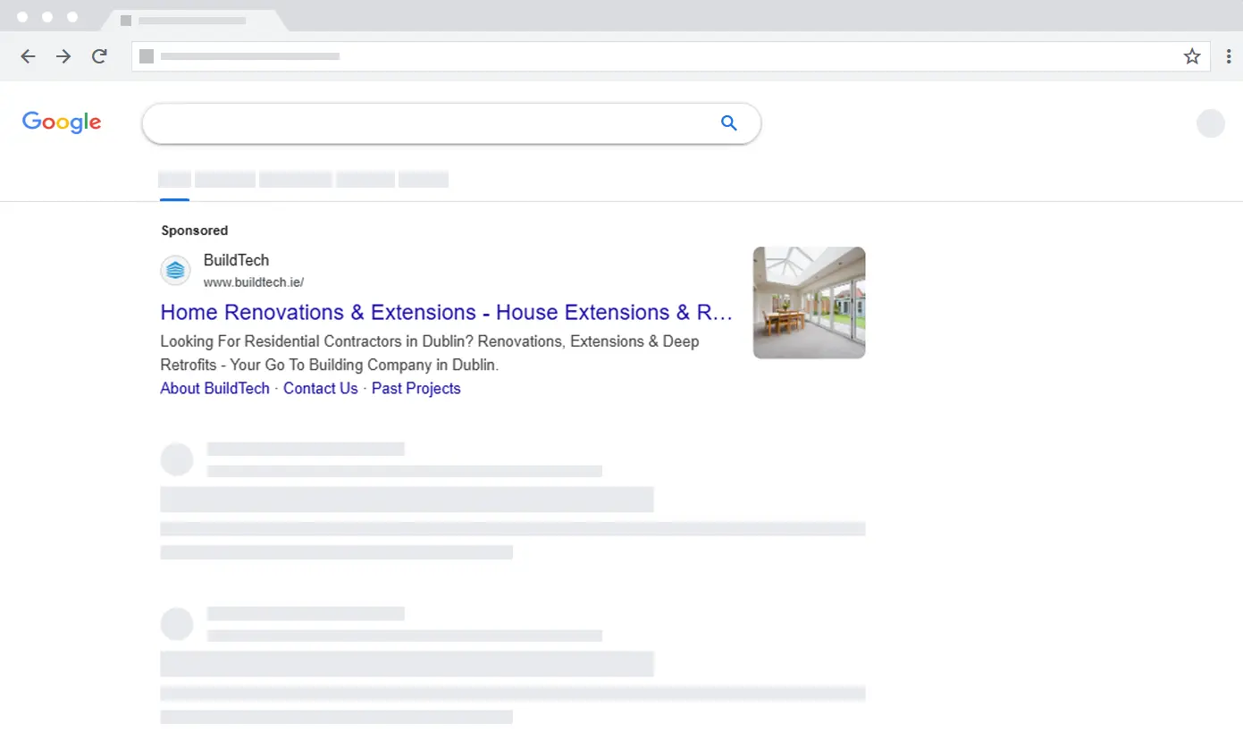 Search Ads appear directly at the top of Google search results when users type in specific queries related to construction services. These ads are perfect for targeting clients who are actively looking for your services and are ready to take action.