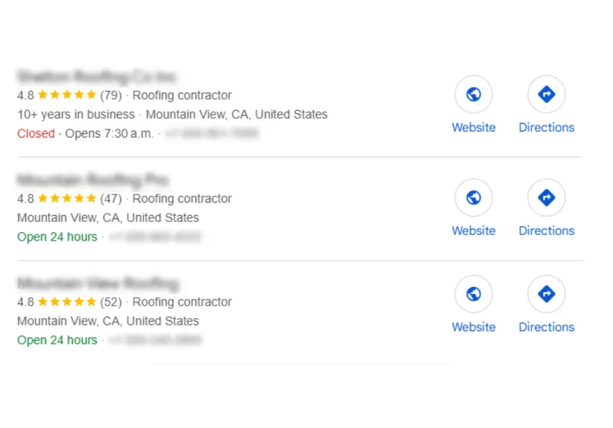 The Google Map 3-Pack is crucial for local SEO success. Appearing here means your roofing business is prominently displayed when local customers search for roofing services. This helps you gain trust and attract customers who prefer local services.